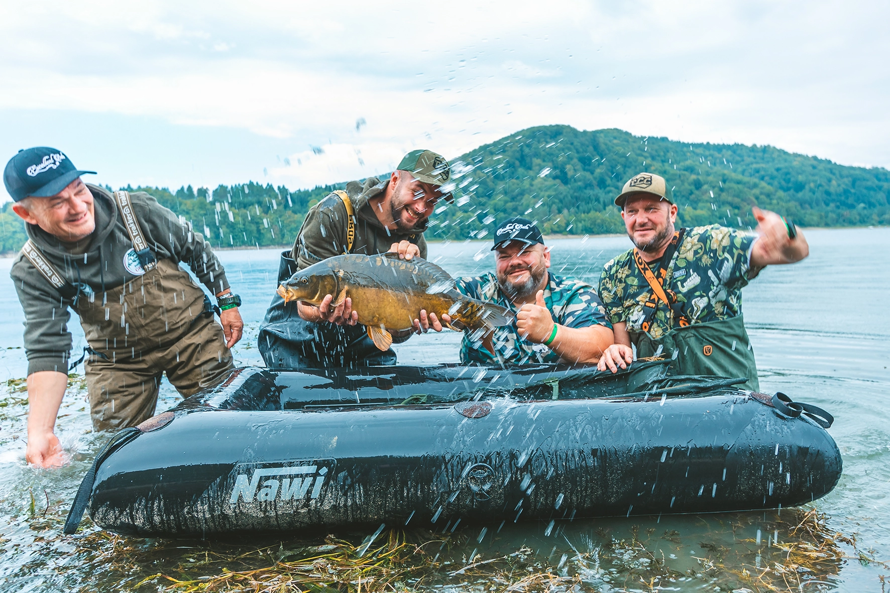 Cała mata została wykonana z materiału PCV. Ponadto wyposażona w uchwyty transportowe z mocnego poliestru.