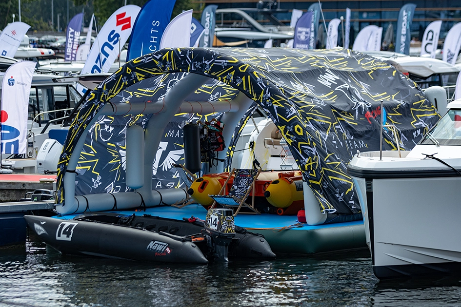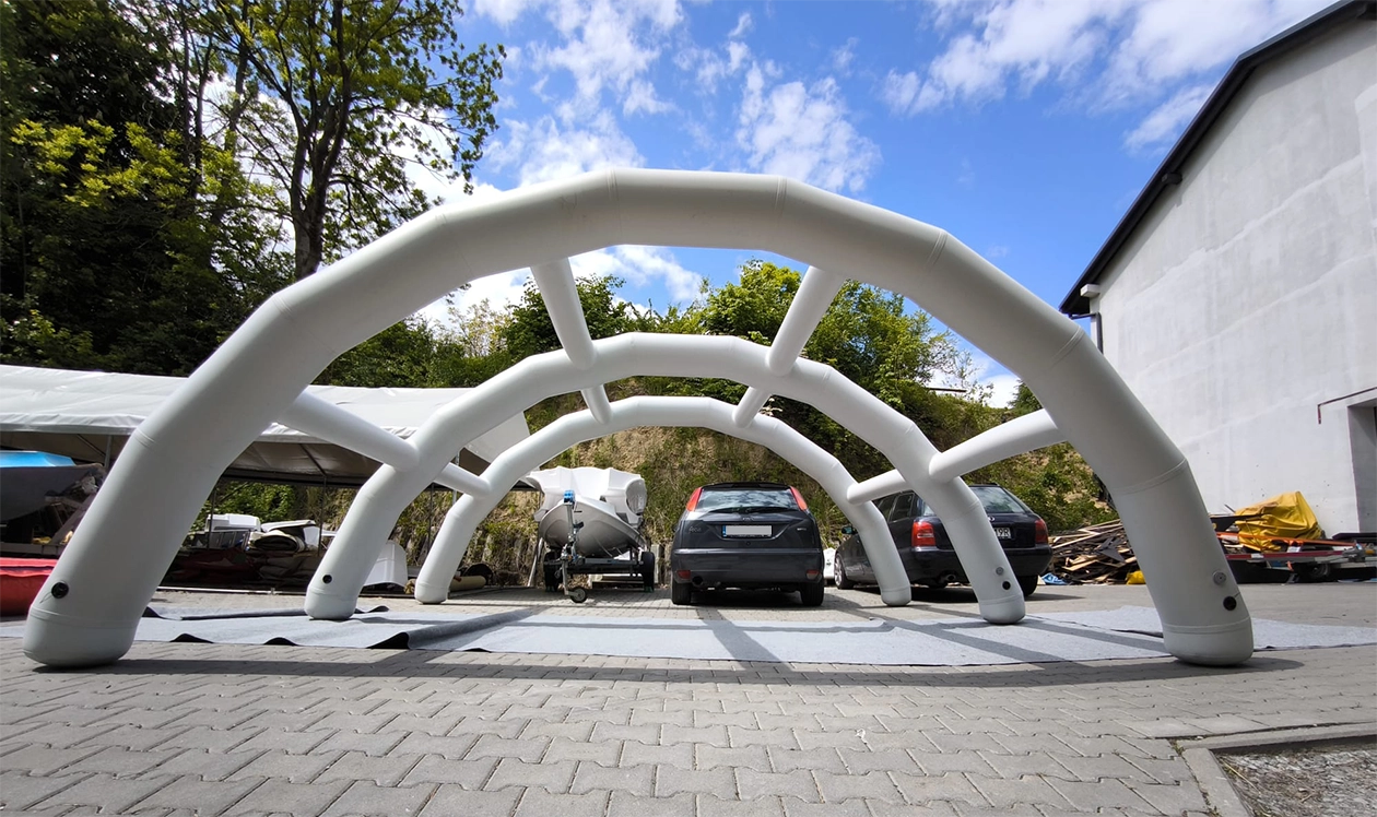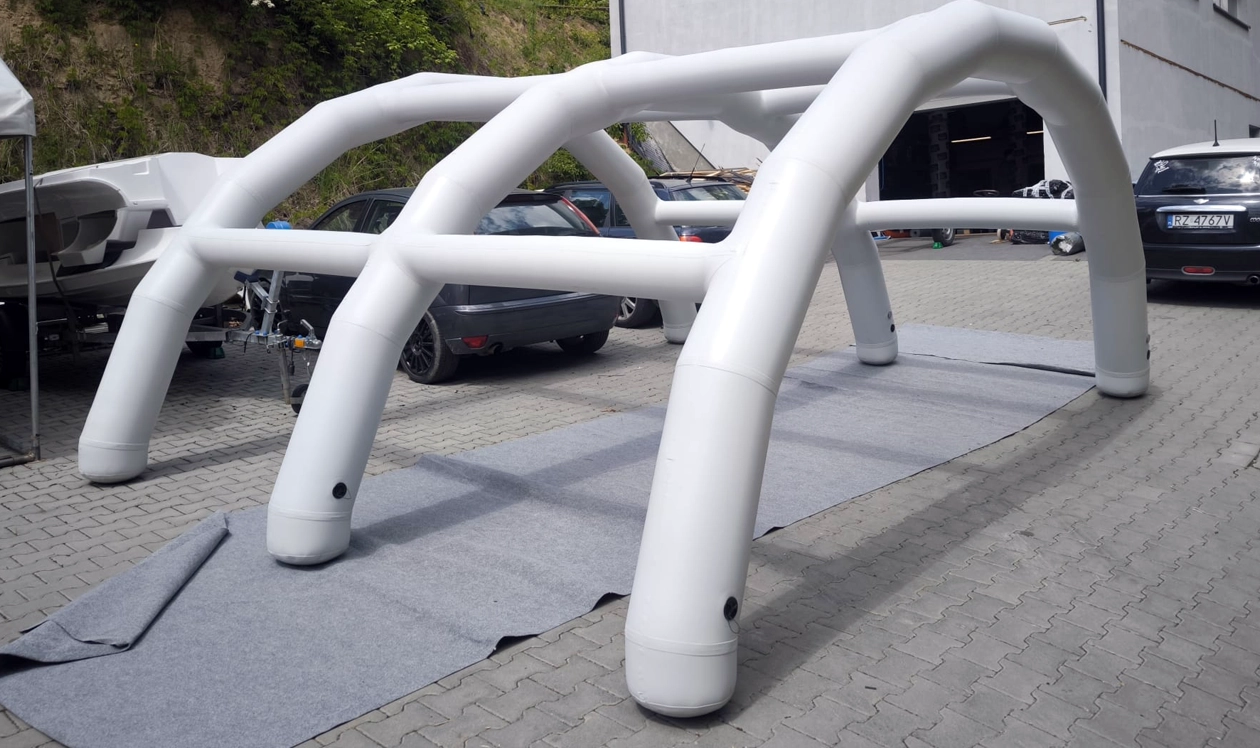 Namioty pneumatyczne, oparte na stelażu wypełnianym powietrzem, cechują się wyjątkową szybkością i łatwością rozstawienia — mogą być gotowe do użytku w ciągu kilku minut.